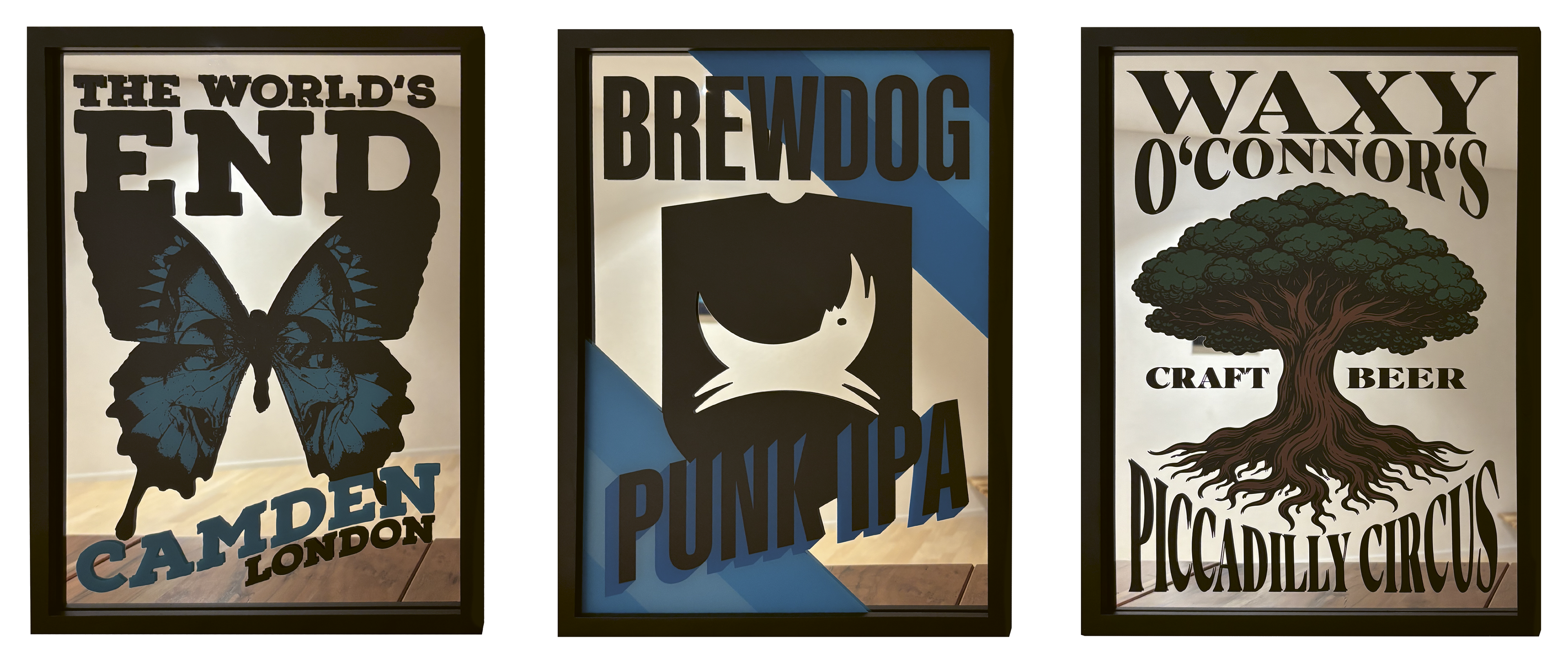 Für dieses Projekt habe ich drei Spiegel gestaltet – inspiriert von den klassischen Spiegeln, wie man sie in traditionellen Pubs findet. Statt Werbung für Biermarken zeigen meine Arbeiten jedoch meine drei Lieblings-Pubs in London, mit denen ich besondere Erinnerungen verbinde.